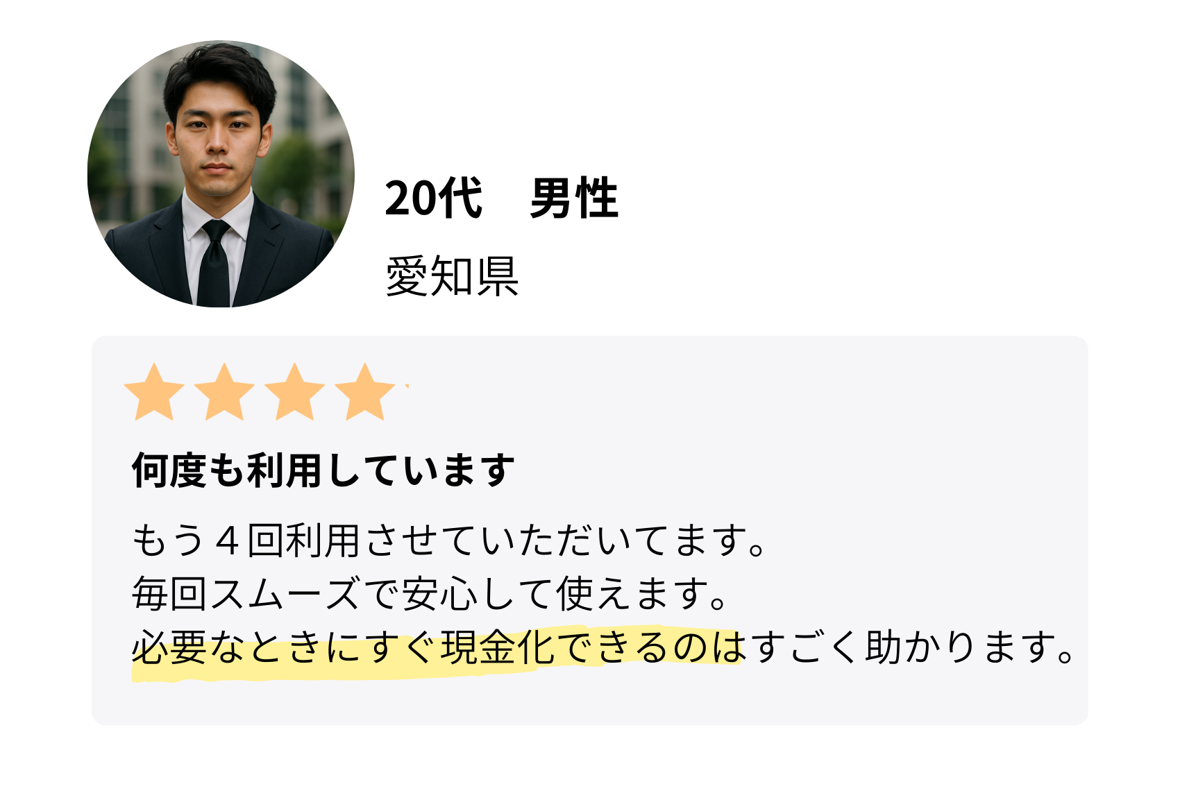 この業者は現金化の知識が豊富なプロぞろいなので、現金化が初めてで不安な方にはこの業者一択でしょう。